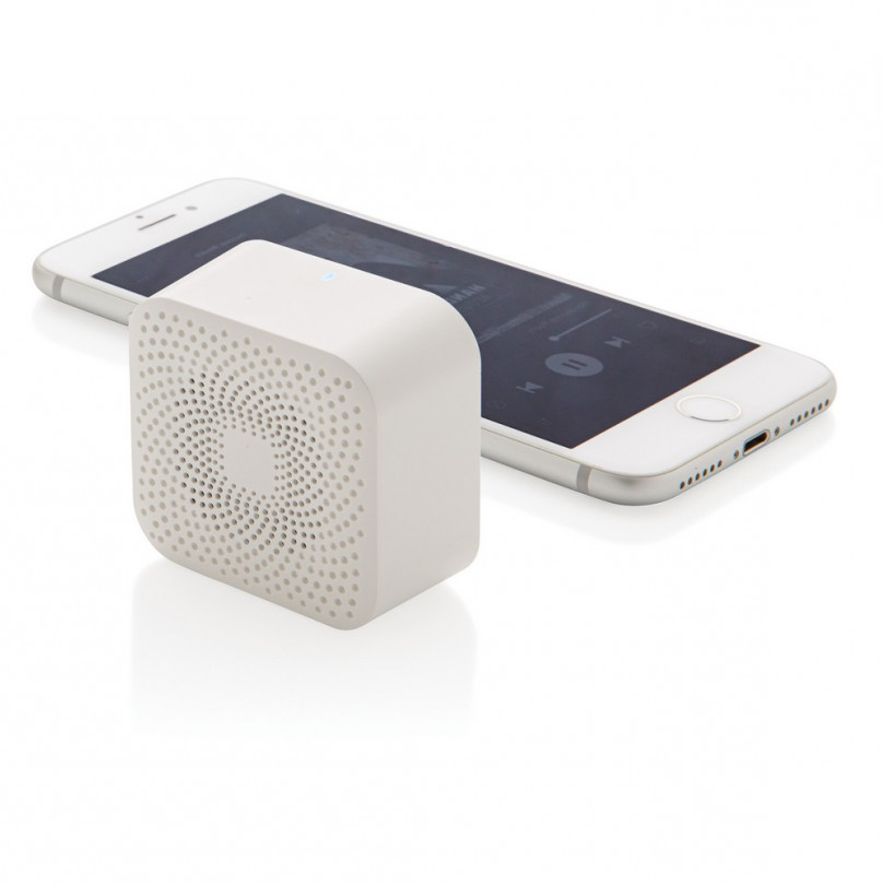 3W Głośnik bezprzewodowy z własnym nadrukiem, Bluetooth wersji 5.0, biały wykonany z ABS, akumulator o pojemności 360 mAh umożliwia odtwarzanie muzyki do 3 godzin, ponowne naładowanie trwa tylko 1 godzinę, zasięg działania do 10 m, kabel micro USB wykonany z TPE bez dodatku PVC w komplecie