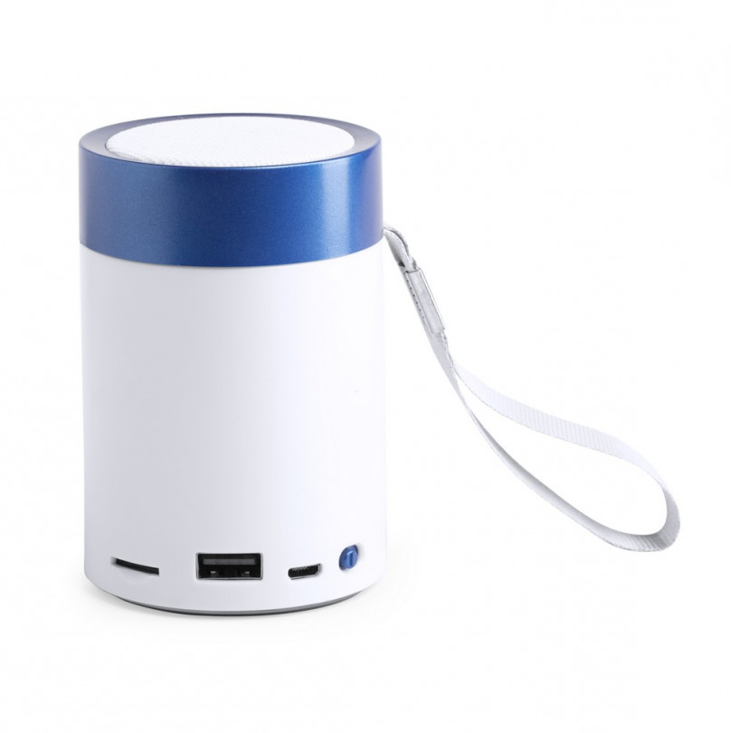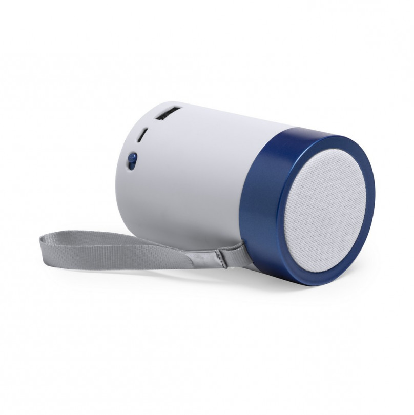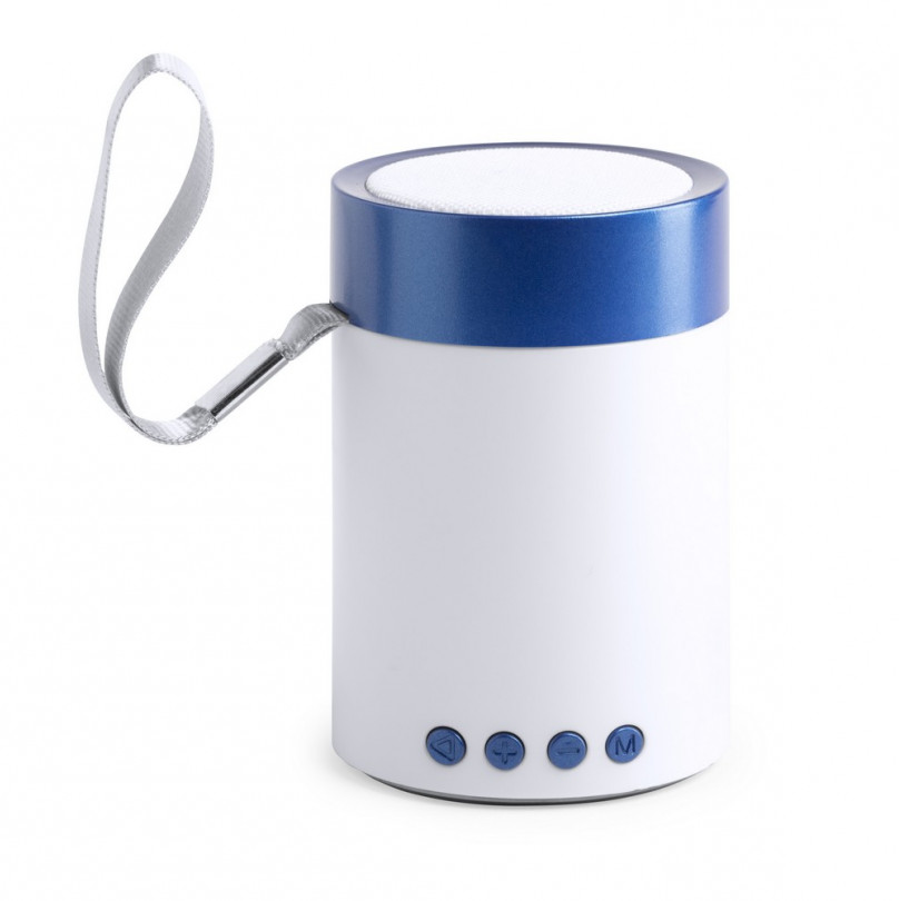 Kod towaru: MSP023XPLReklamowy Głośnik bluetooth niebieskiego koloru. BT 4.2 3W, bateria 350 mAh, posiada radio, funkcję odbierania połączeń oraz czytnik kart micro SD
