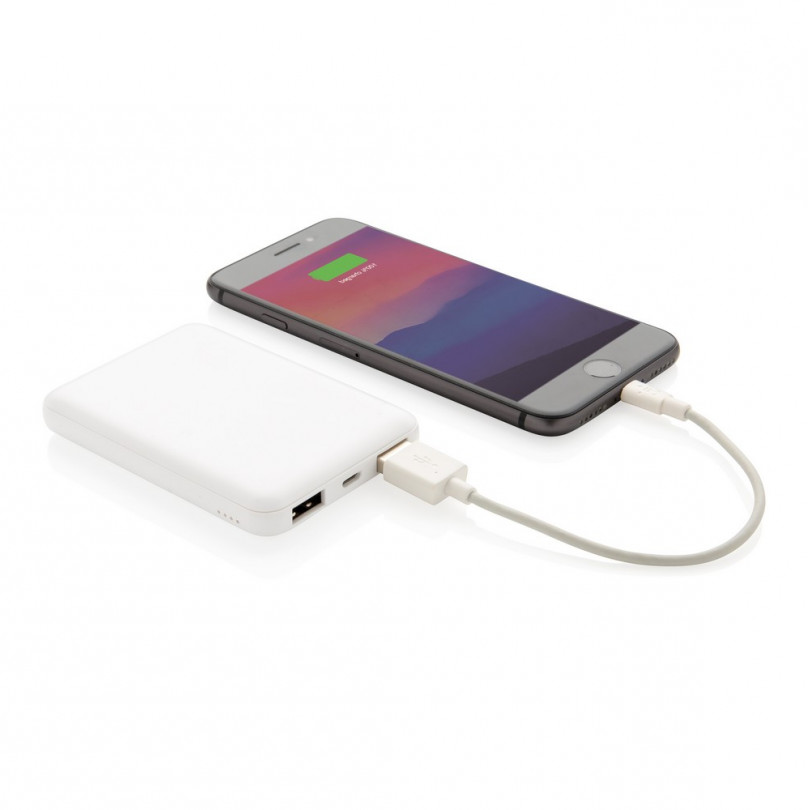 Biały power bank do nadruku logo 5000mAh, kiesonkowy rozmiar
